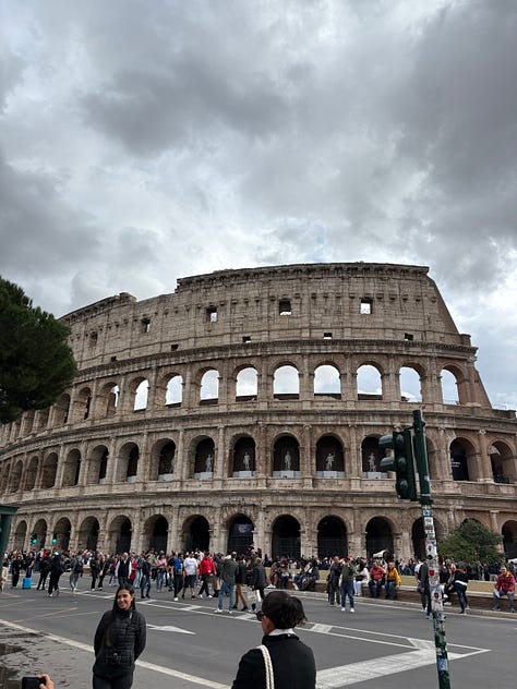 We exited the museum a little after one and booked it around the block to St. Peter’s Basilica. The line to enter was ridiculously long, and a worker told us that no one had gotten in yet because of Jubilee celebrations, which happen once every 25 years. We had tickets to enter the Colosseum at 4:45 and hadn’t eaten anything except croissants yet so the prospects of waiting for hours in another long line seemed unappealing. We called an audible and didn’t try to get in, hoping we could arrive early the next day when entry was free the whole day.