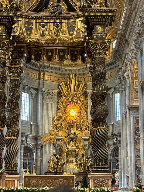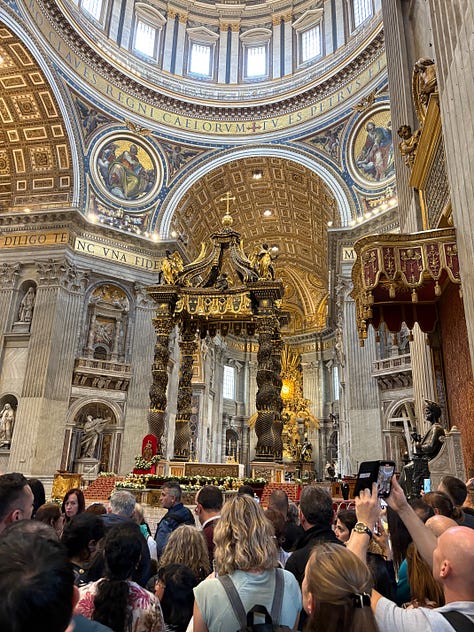 Finally, we got our chance to enter. We passed through the Holy Doors, which are open this year on account of the Jubilee, and the immensity of the structure became more apparent as we stepped over the threshold. The smell of incense still hung heavy in the air as we walked, awestruck, through the Basilica. The altar, which according to tradition is set above the tomb of the Apostle Peter, was especially stunning.