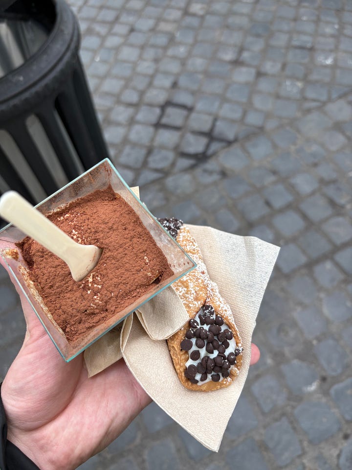 53: Tiramisu and cannoli. The tiramisu was a little too wet and coffee soaked for my taste, but the cannoli was divine.