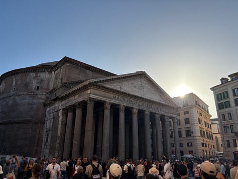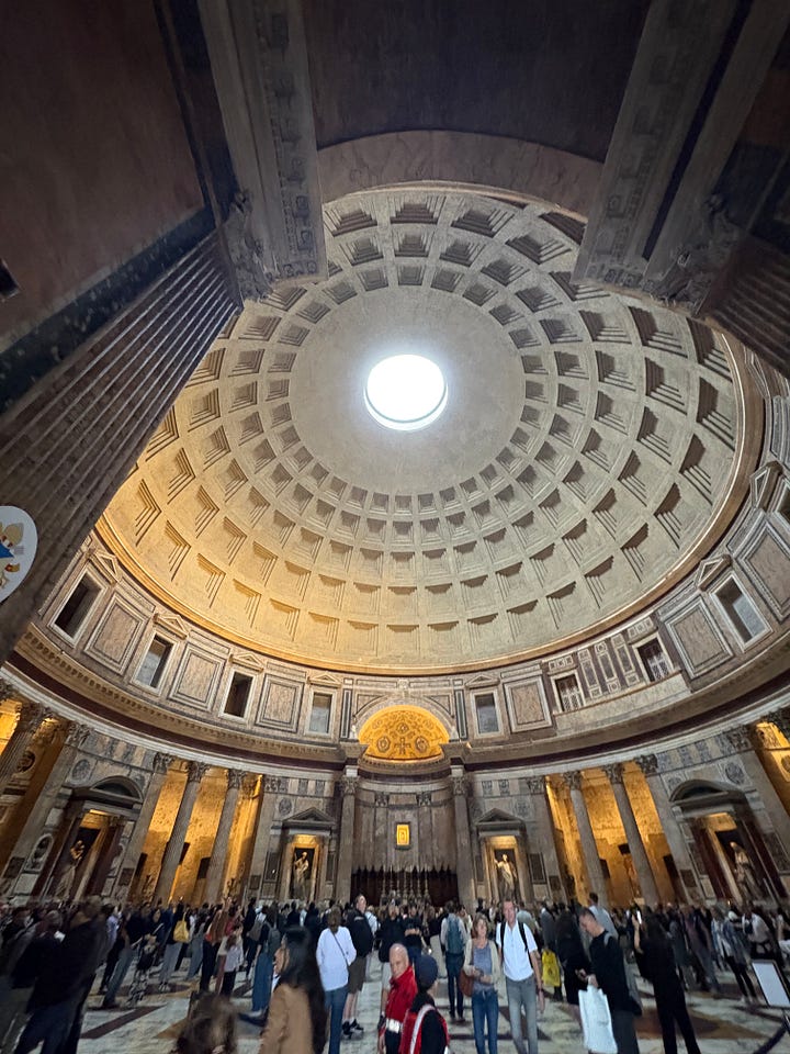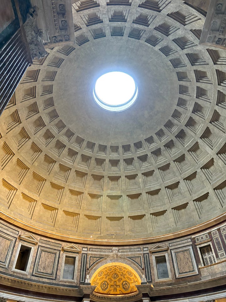 After a lunch of pizza and soppli (a kind of fried cheese and rice ball) and a dessert of tiramisu and cannoli, we headed to the Pantheon. We had seen it from the outside, but because we had a few hours before our shuttle to the airport, we decided to pay the 5 euros for tickets and go inside. The dome was quite impressive and it felt cool to be standing in a building commissioned by Augustus, but the inside was plainer than I expected. Having just come from St. Peter’s, though, I’m aware that my scale for grandiosity was probably skewed.