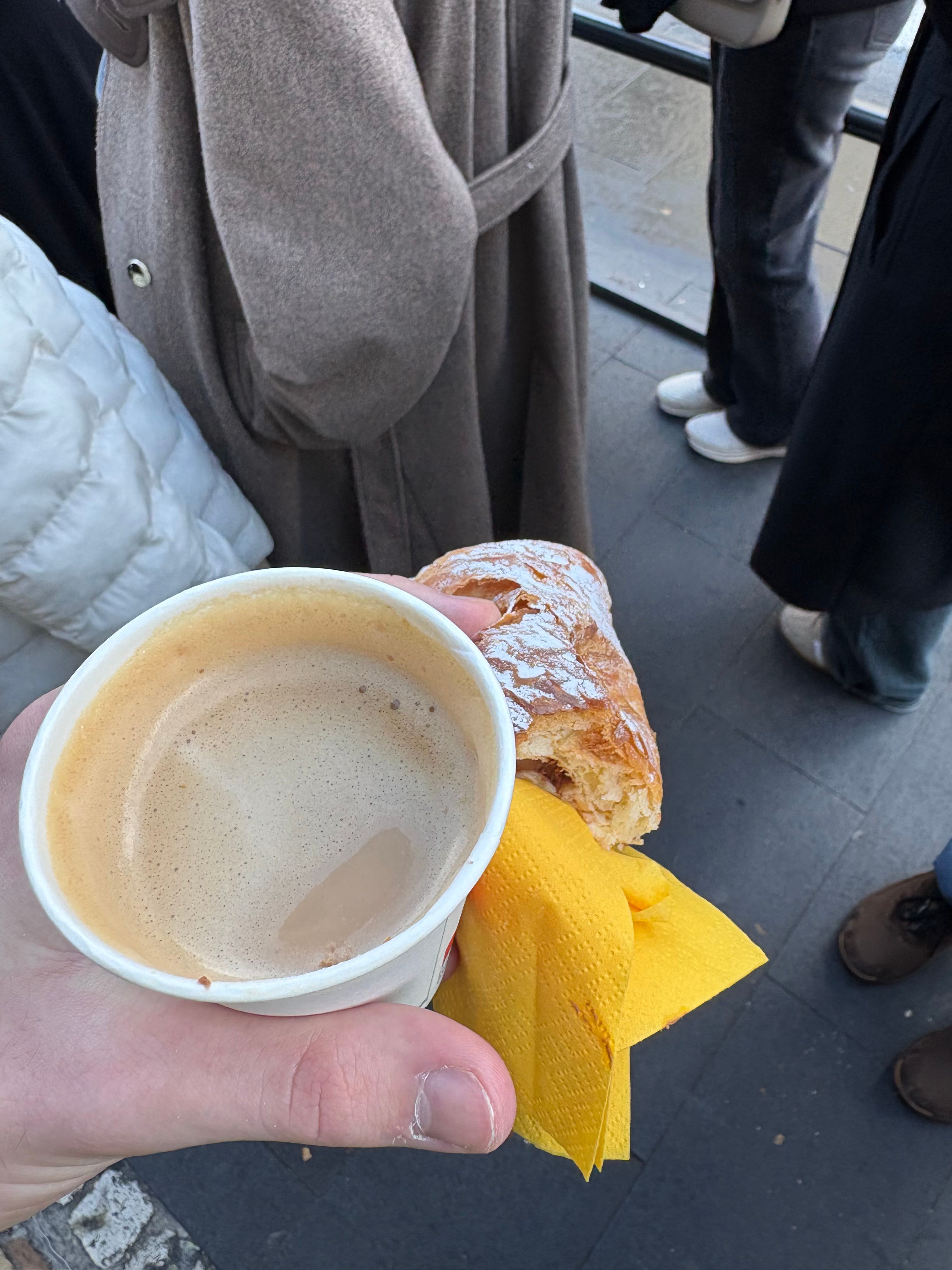 9: A chocolate croissant and coffee (that I couldn’t finish—not a big coffee guy) for breakfast Saturday.
