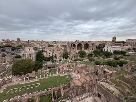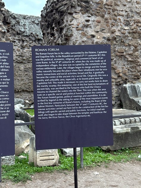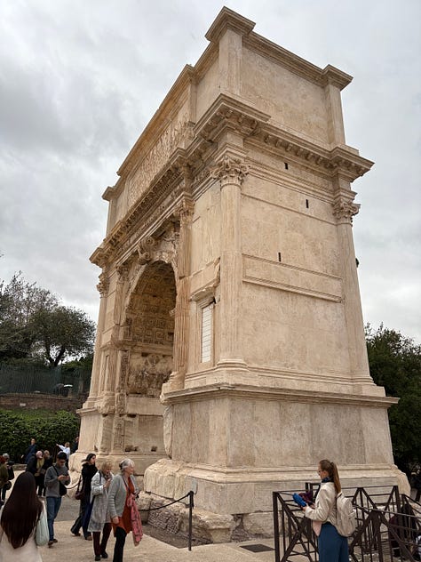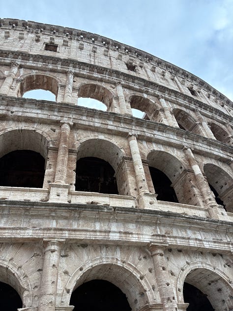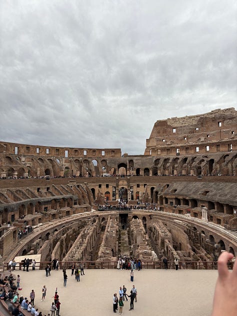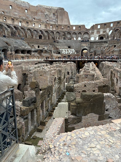 We had a delicious lunch within sight of the Colosseum and made our entry time comfortably. I am a fan of Roman history and was especially looking forward to the Colosseum. It felt smaller than I thought it would. I mean smaller in the sense that it was obvious in person that the front rows of spectators in the lower bowl would have been right on top of the action and how packed the spectators would have been in the arena, which sat anywhere between 30,000 and 80,000.