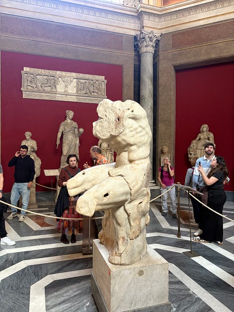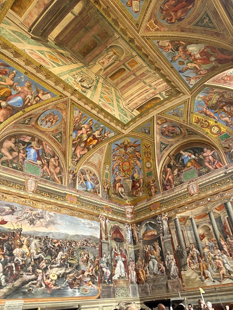 We weren’t able to get much sleep because we had to get up early to stand in line for the Vatican Museum, which is extremely competitive to get into if you don’t have tickets ahead of time. Tickets sell out months in advance, so we knew we had to get to the museum early so we could stand in the non-ticket line. We got up at 5:30, got ready, caught an Uber, and were in line by 6:30. The museum opens at 9, and we were hoping to get in by 10:30am, which would give us time to explore before our 1:00pm tickets for St. Peter’s Basilica. Our wait ended up being a little longer than we expected; we didn’t enter the museum until just before 12. The tiresomeness of our wait was eased a little by a couple we met in line from Louisiana who were spending a year backpacking across the world. They’d already spent time in Japan, Vietnam, and Thailand and were in Rome to kick off the European leg of their trip.