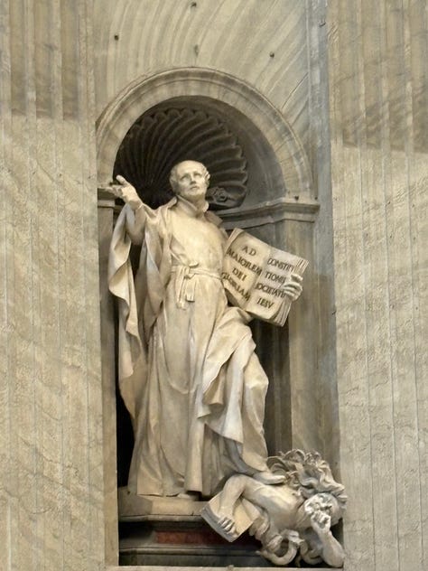 42: This photo gives a sense of the Basilica’s size. I didn’t get a photo of the humongous statues of Peter and Paul that flank the Square. Both statues are over 18 ft tall and are mounted on pedestals ~15 ft tall.