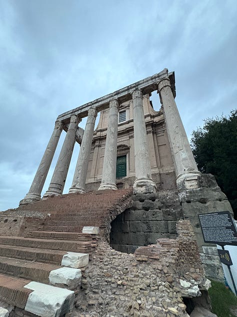 We went straight from the Colosseum to the Roman Forum, which is only a couple of minutes’ walk away. It was surreal to walk the Palatine Hill, see the vendors’ stalls that are still mostly intact, and stand a stone’s throw from where Julius Caesar was stabbed to death in the Temple of Saturn. The gardens around the Forum were also lovely.