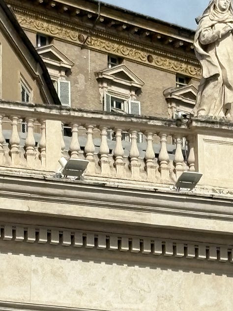 40: My view of Pope Leo. He was speaking from the middle window, which was obstructed by a balcony railing, as you can see.